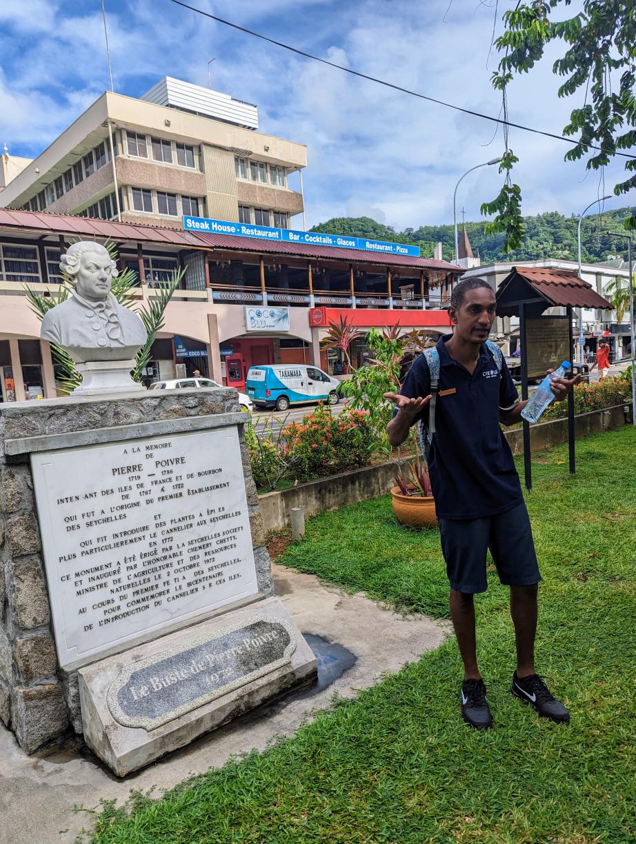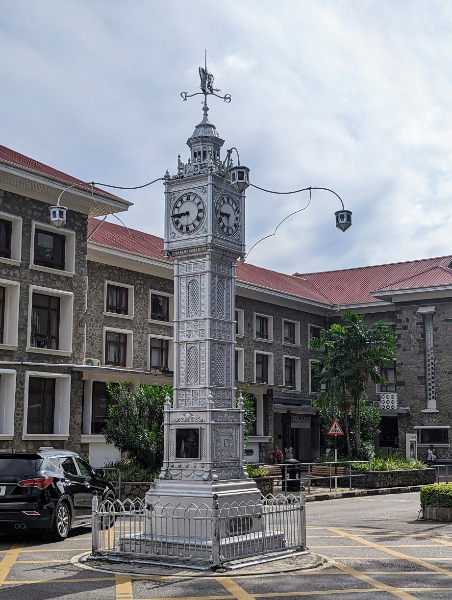 ist man einmal hier und was solls. Wir "erwerben" eine Inselrundfahrt für 50 Euro/Person und ein Insel-Hopping für 250 Euro/Person zu den Inseln Praslin und La Digue. Bestandteil der Busrundfahrt ist ein Rundgang durch die kleinste Hauptstadt der Welt, durch Victoria. Victoria ist nur ein paar Kilometer vom Hotel in Beau Vallon entfernt, die Fahrt durch die Stadt geht infolge des Verkehrs recht langsam. ![]() |