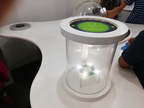 | Im Inneren des Monolithen zeigen verschiedene Experimente physikalische Effekte. Das Prinzip des Kreisels (oben). Elektromagnetische Energieübertragung (unten). ![]() |