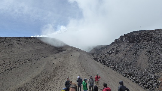 | Der Bus hat uns auf ca. 4600 m Höhe gebracht, der Rand des Gletschers liegt bei 5000 m. Da müssen wir hinauf. |