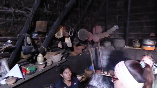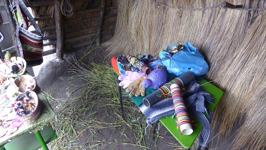 lebendig wirkt. Das die Familie das Steinhaus (links) nicht bewohnt, sondern die Strohhütte ohne Licht und Wasser deutet eher auf einen Zeitsprung innerhalb des Ausflug hin. In der Hütte unten finden sich zur Unterstützung der Authentizität allerlei landestypische Gegenstände und auch Meerschweinchen, die den Schamanen hier zu diagnostischen Zwecken dienen sollen. |
