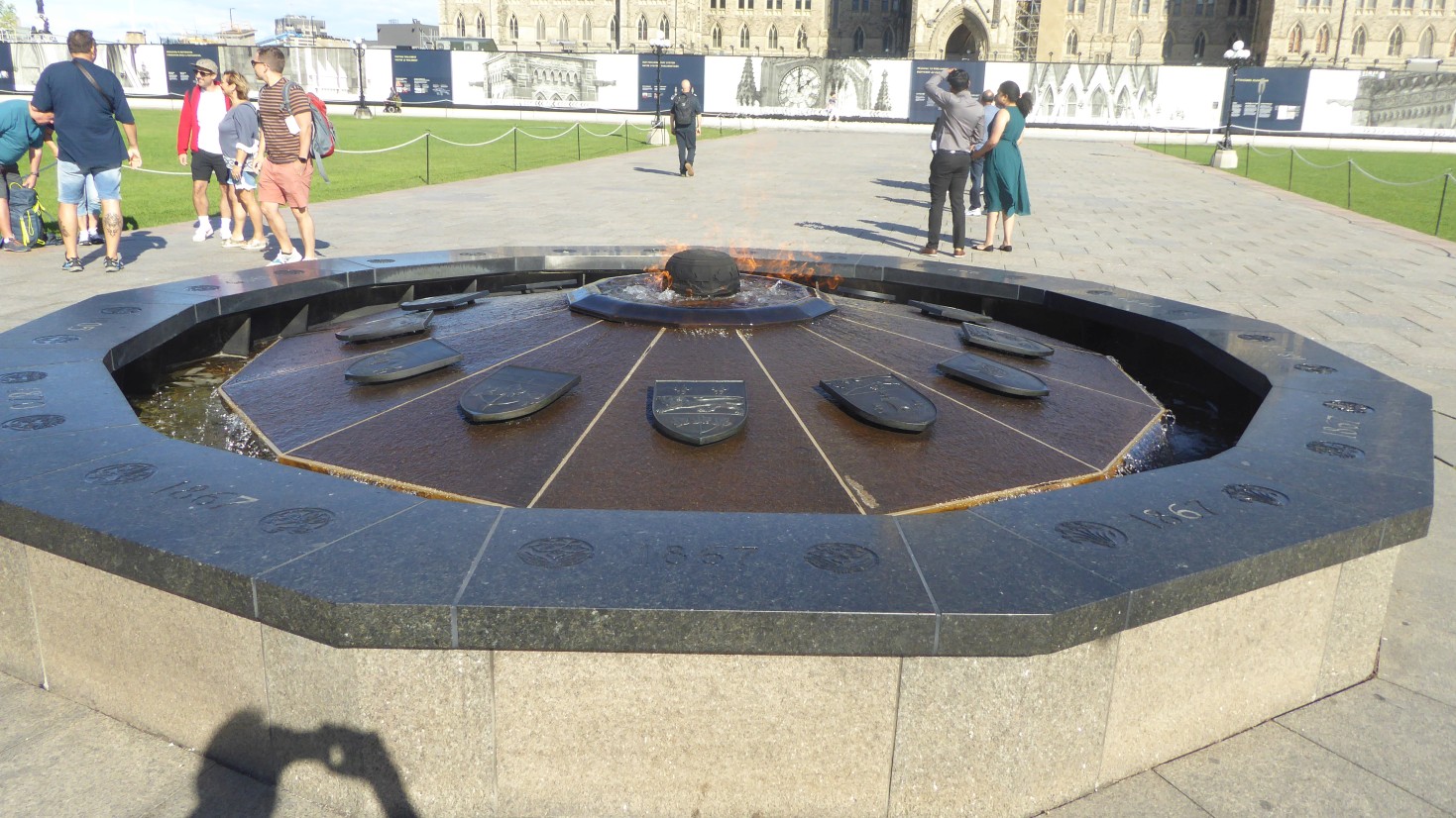 Die ewige Flamme vor dem Parlamentsgebäude, Zentralblock. Hier tritt ein Gas durch Wasser hindurch und verbrennt an dessen Oberfläche. |