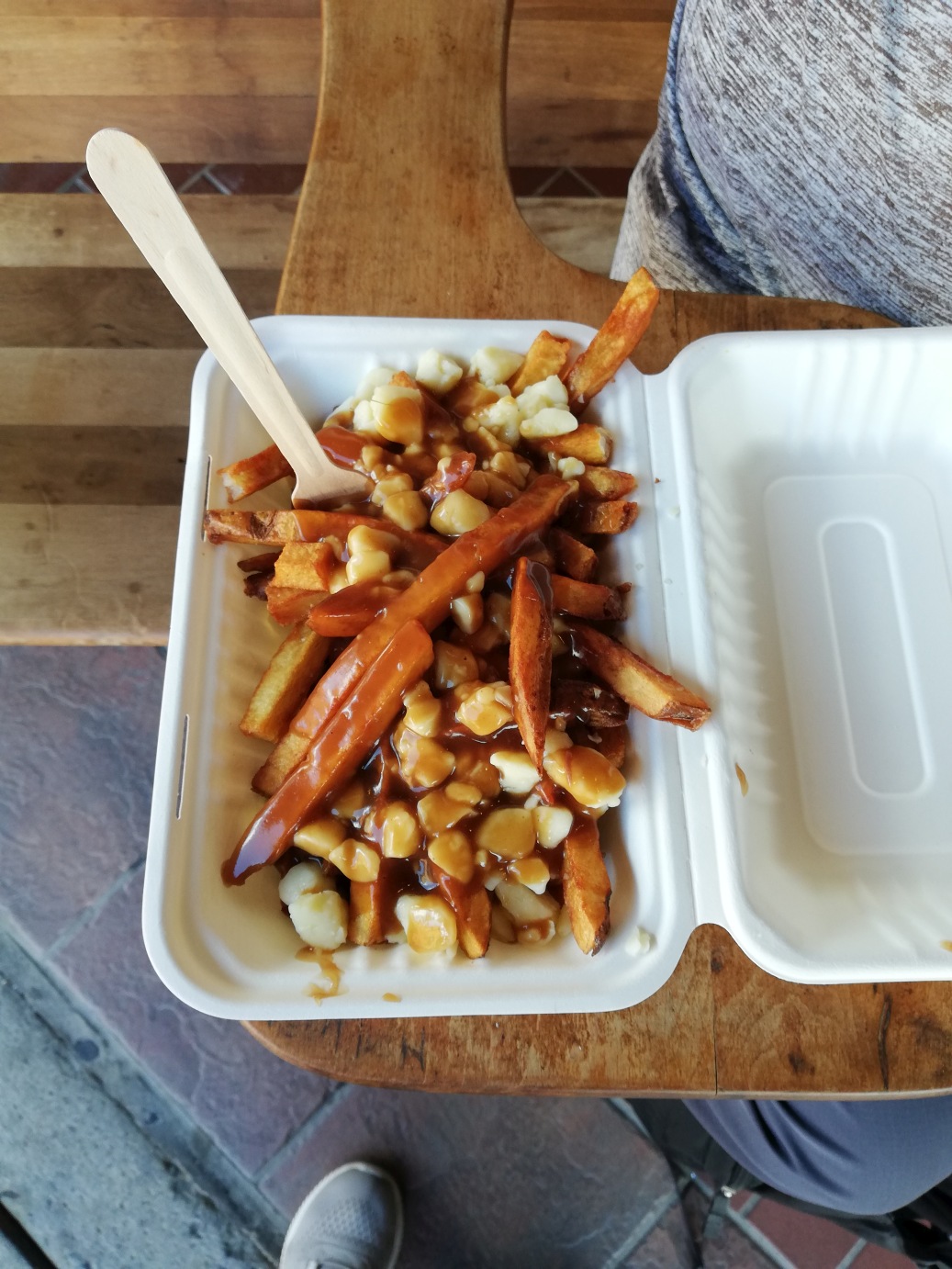 Das mit dem Essen probieren wir auch, ich muss unbedingt den Kriegstreiber versuchen, Gabi nimmt einen Burger. Burger schmeckt, die Mischung aus Pommes, Käse und Soße ist Geschmackssache, mein Geschmack ist es nicht. ![]() |