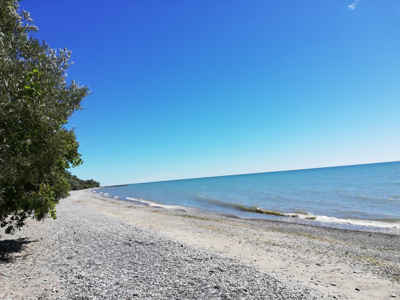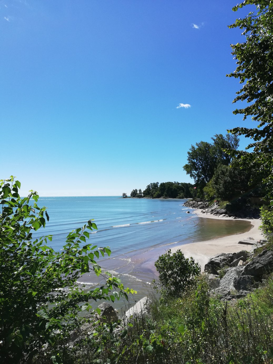 Am nächsten Tag geht es weiter nach Niagara Falls, 510 km entfernt. Um Toronto herum ist Stau und wir kommen erst gegen 18°° Uhr dort an. Allerdings machen wir einige Stopps am Ontariosee. Beeindruckend, man glaubt am Meer zu stehen. |