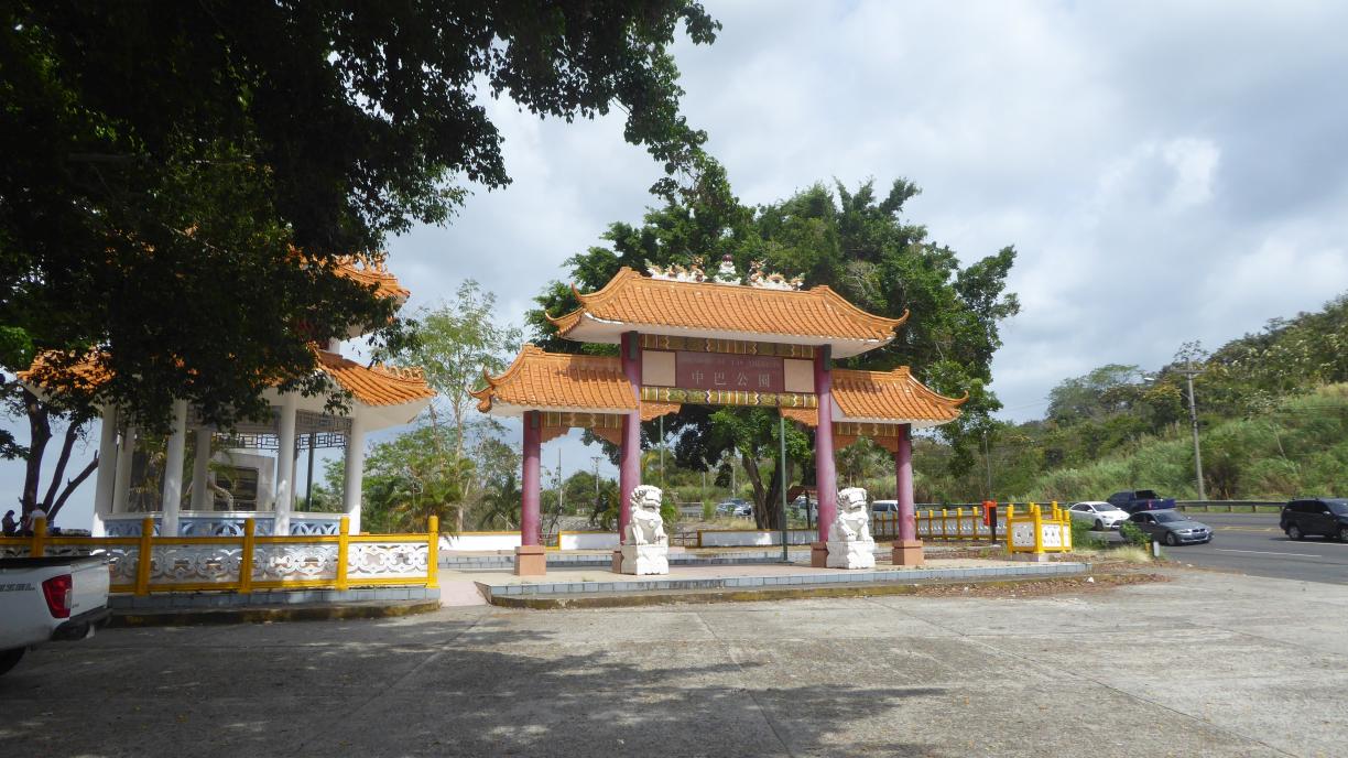 | Quert man die Puente de Las Americas in umgekehrter Richtung, so kann man auf einen Parkplatz abbiegen, der an einem Aussichtspunkt (Mirador) liegt. Von dort hat einen wunderbaren Blick auf die Ausfahrt des Kanals. Der chinesische Stil des Miradors erinnert an die panamaisch - chinesische Zusammenarbeit, die seit 2018 intensiviert wird. | |||