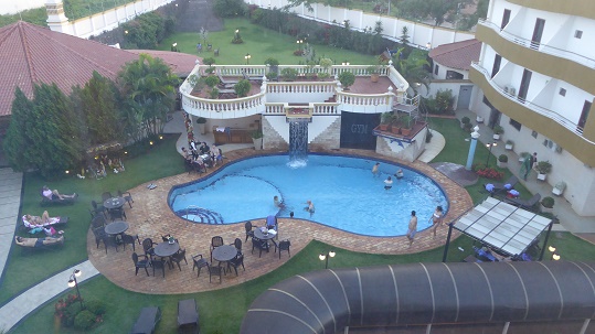| Das Hotel kostet 70 $ pro Nacht, für ein Zweibettzimmer ein guter Preis. Wir buchen zunächst für 2 Nächte. Pool gibt es auch. |