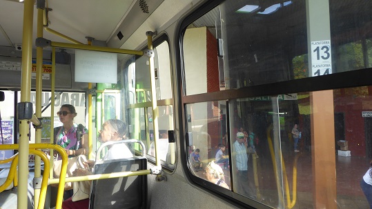 Ein Taxi bringt uns für 50000 Guaranis zum Busbahnhof von da gehts für 9000 Guaranis nach Brasilien mit dem Bus. Der Bus fährt um 10°° Uhr die Fahrt dauert 2 h, das hängt weniger mit der Entferung als eher mit dem Stau zusammen, der sich inzwischen auch nicht aufgelöst hat. Unterwegs ein kleiner Einblick in Stadt und Leute. Ciudad del Este besteht aus langweiligen Einkauftempeln, mehr sieht man nicht. |