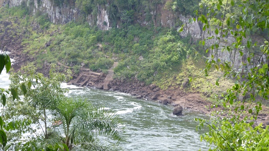 Taxi - Busbahnhof. Am Busbahnhof gibt es auch einen Geldautomaten, der spuckt gegen VISA maximal 1,5 Mio Guarani aus.![]() Vom Schlund aus sieht man auch gut die brasilianische Seite. |