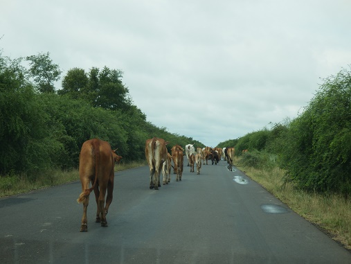Die Fahrt wird manchmal durch Rinder, oft aber auch durch Schotterpisten behindert. Richtig schlimm ist das aber alles nicht. |