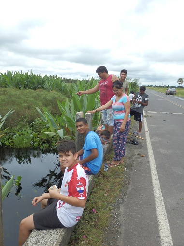 Die freundlichen Menschen sind gerade beim Fischen und das geht, wie man sieht, auch ohne Angelrute. |