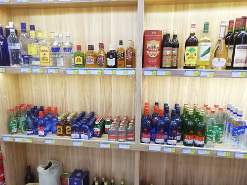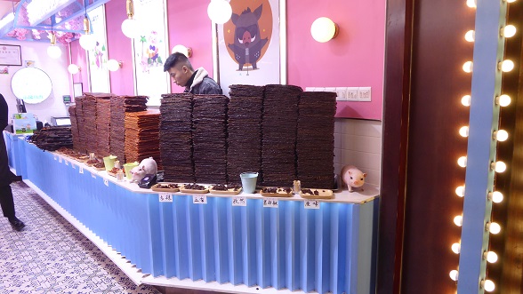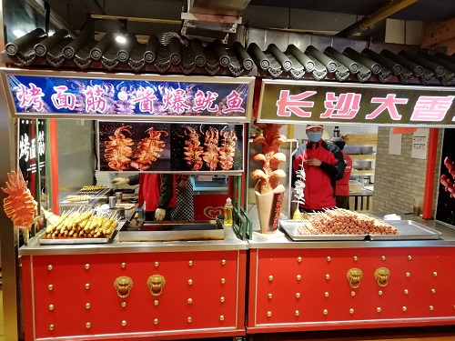 Andenkenläden und Imbissbuden. Nach Aussage von Herrn Huang sind