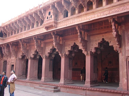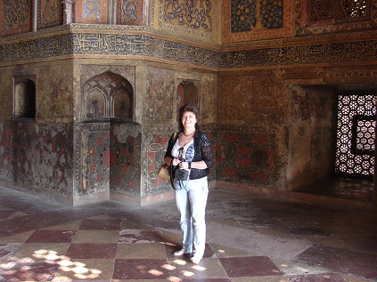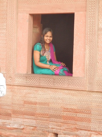 (so ähnlich wie in Dehli) ist unser nächstes Ziel. Es liegt auf einem von Menschenhand aufgeschütteten Hügel am Ufer des Yamuna-Flusses und ist nur etwa 2,5 Kilometer vom Taj Mahal entfernt. Zum Abschied gibt uns eine junge Inderin noch ein Lächeln mit auf den Weg. |