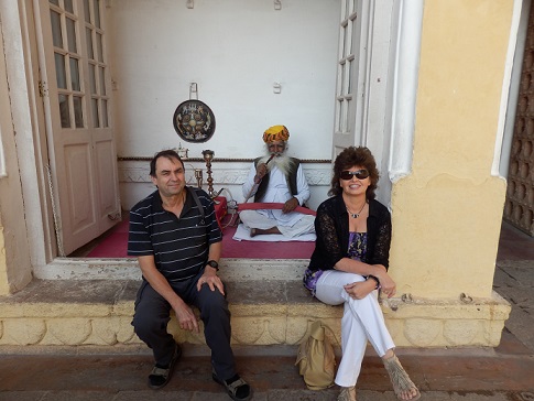 Von ihr aus haben wir einen schönen Blick auf Stadt und Umgebung. Für ein paar Rupien dürfen wir uns dann vor diesem rauchenden Derwisch fotografieren lassen. |