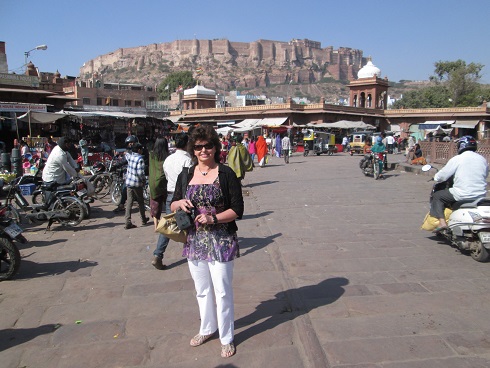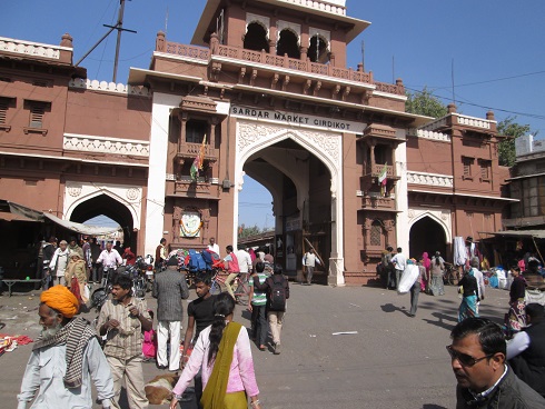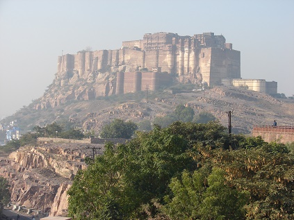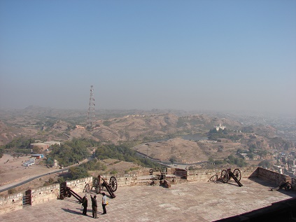 Nachmittags kommen wir in Jodpur, der Blauen Stadt an. Traditionell kennzeichnete die Farbe Blau die Zugehörigkeit der Bewohner zur Kaste der Brahmanen, allerdings haben heute auch Nicht-Brahmanen diesen Brauch übernommen. Man sagt der Farbe nach, dass sie ein effektives Mittel zur Abwehr von Moskitos sei. |