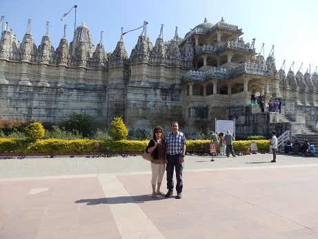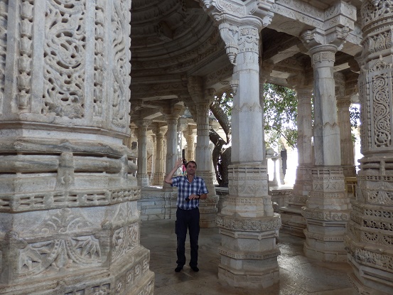 Auf dem Weg nach Udaipur machen wir Station in Ranakpur. Ranakpur liegt auf einer Höhe von 486 Metern in einem waldreichen Tal im Westen der Aravallibergkette auf einer Linie zwischen Jodhpur und Udaipur. Es ist tatsächlich das erste Mal auf Reise, dass wir Wald und Berge erleben. Die Gegen ist geschützter Nationalpark, und es gibt Leute, die hier wandern oder durchwandern. Und es gibt Tiger und deshalb bleiben wir lieber auf der Straße. |