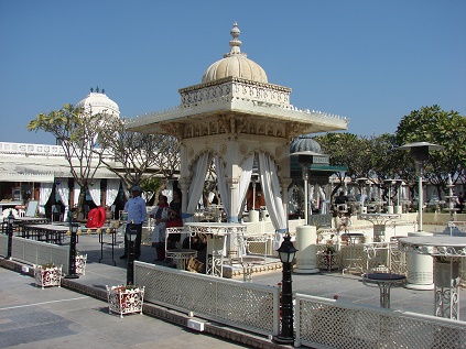 Der große Maharadschapalast, in welchem bis 1956 der Maharana von Mewar regierte, wird heute als Museum sowie als Hotel genutzt. Unterhalb des Palasteingangs befindet sich der Jagdish-Tempel. | ||