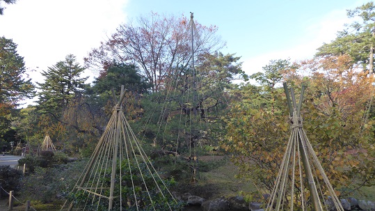 Wir besuchen den Kenrokuen Garten in Kanazawa. Er ist wie die meisten Gärten in Japan ein Landschaftsgarten mit dem typischen Erscheinungsbild der Edo-Periode (1603 - 1868) Ursprünglich war der Garten außerhalb der Burg Kanazawa am Rand der Burg angelegt worden. 1676 zog der 5. Herrscher Maeda Tsunanori das Gartenhaus in das Schloss um. Er ließ einen neuen Pavillon bauen und ließ einen Garten in der Umgebung des Schlosses anlegen. 1759 brannte der Pavillon nieder und im Zusammenhang mit dem Wiederaufbau wurde ein Wasserfall und ein Springbrunnen gebaut. In den folgenden Jahren wurde immer wieder um und ausgebaut. Es entstanden Brücken und künstliche Wasserwege. |
