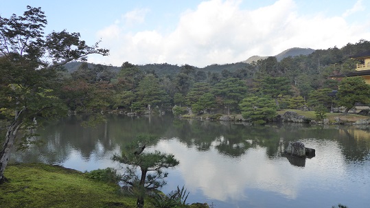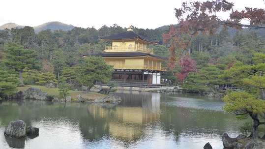 | Kyoto ist wirklich interessant. Nach dem Frühstück im Elcient Hotel Kyoto fahren wir mit dem Bus in die Stadt. Es geht zunächst zum Garten des Kinkaku, des Goldenen Tempel. Der ist in der Tat mit Gold überzogen. Zunächst waren es 2 kg, das hielt dann aber nur bis 1994, dann wurde es erneut mit Gold überzogen. Diesmal waren es 20 kg und 30 Schichten Lack Sieht echt stark aus, aber auch der Garten, ursprünglich aus dem 14. Jahrhundert. |