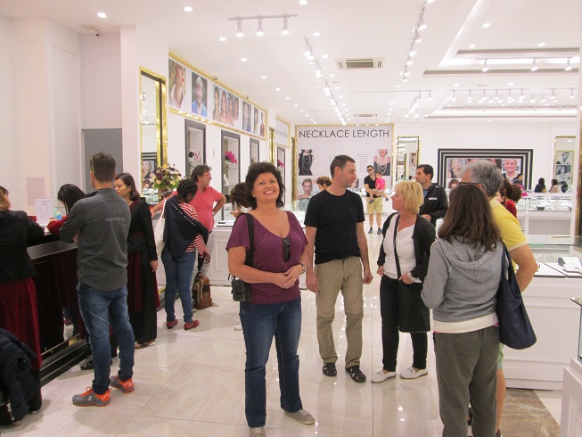 Die besten Perlen schaffen es in diese Verkaufsausstellung oder in die weite Welt. Verkaufsargument ist die Fotogalerie (links oben) schöner Frauen assesoiert mit Perlenketten in der sich auch Angela Merkel präsentiert. |