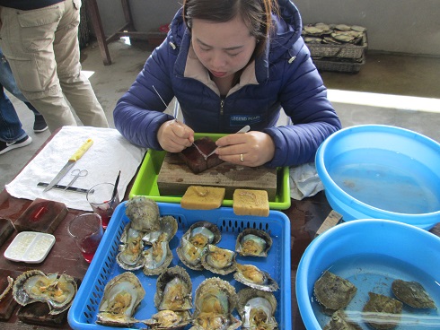 besuchen wir ein Fabrik für Süßwassermuscheln. Hinter