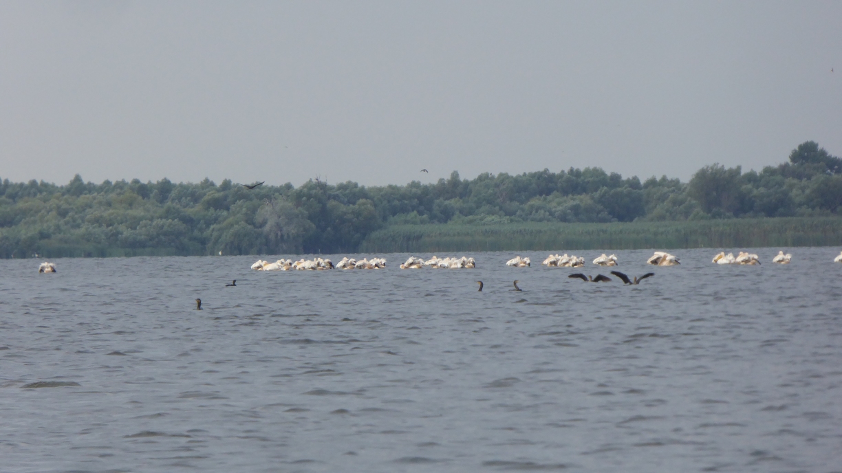 Rosapelikane und Kormorane. Etwa 5000 Tier- und Pflanzenarten sind vom Delta bekannt. |
