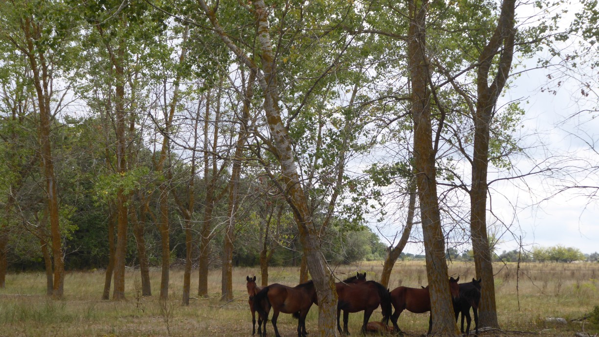 Eine Kutschafhrt schließt sich an. Wir fahren zum Wald von Letea. Er ist das größte Reservat hier und wird bewacht, sein Besuch kostet 10 Lei, etwa 2 Euro. Der Baumbestand besteht zum goßen Teil aus Eichen und Pappeln. Zwischendurch gibt es immer mal wieder Dünen. Vor ein paar hundert Jahren war das alles noch Meeresboden. |