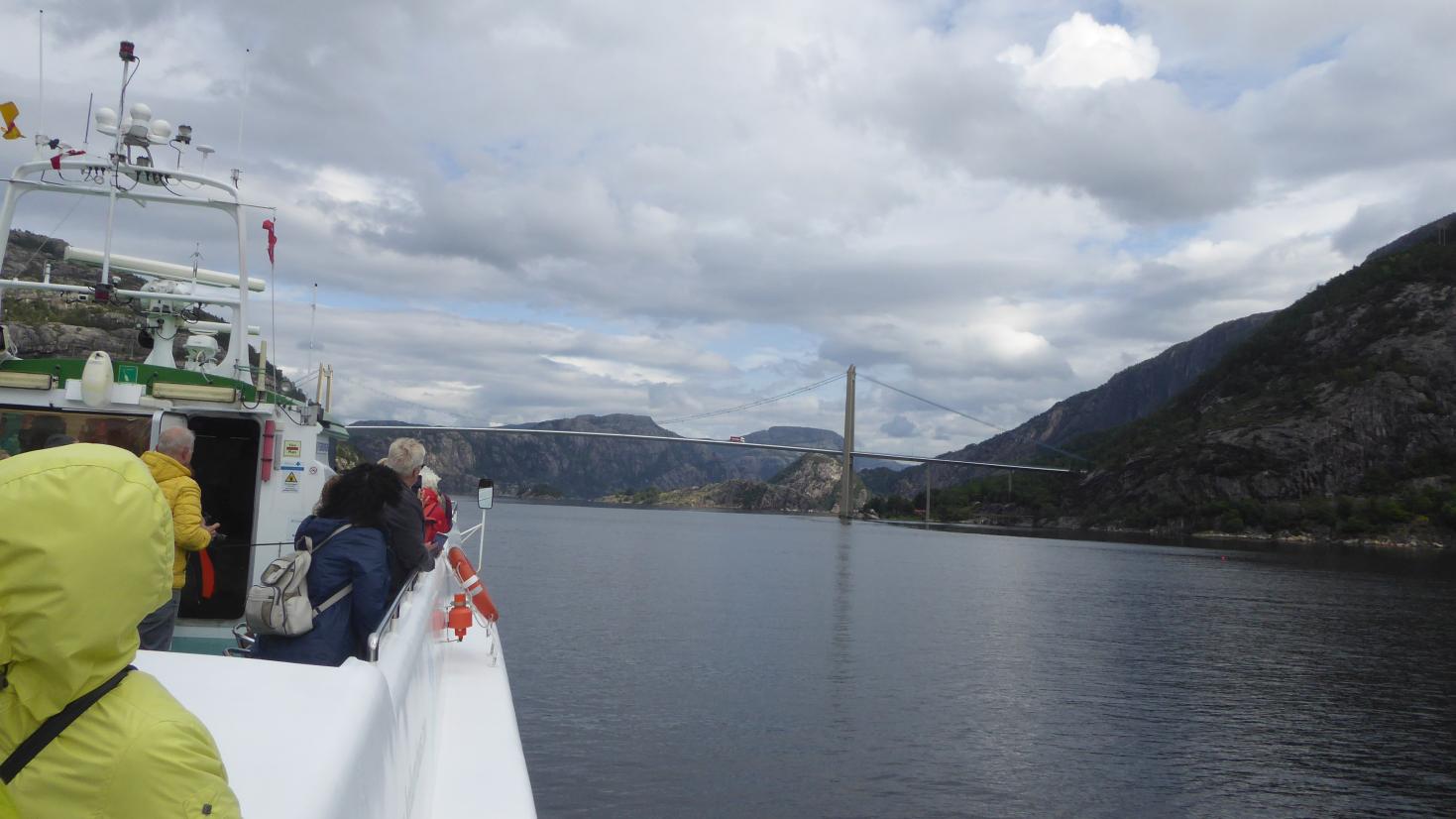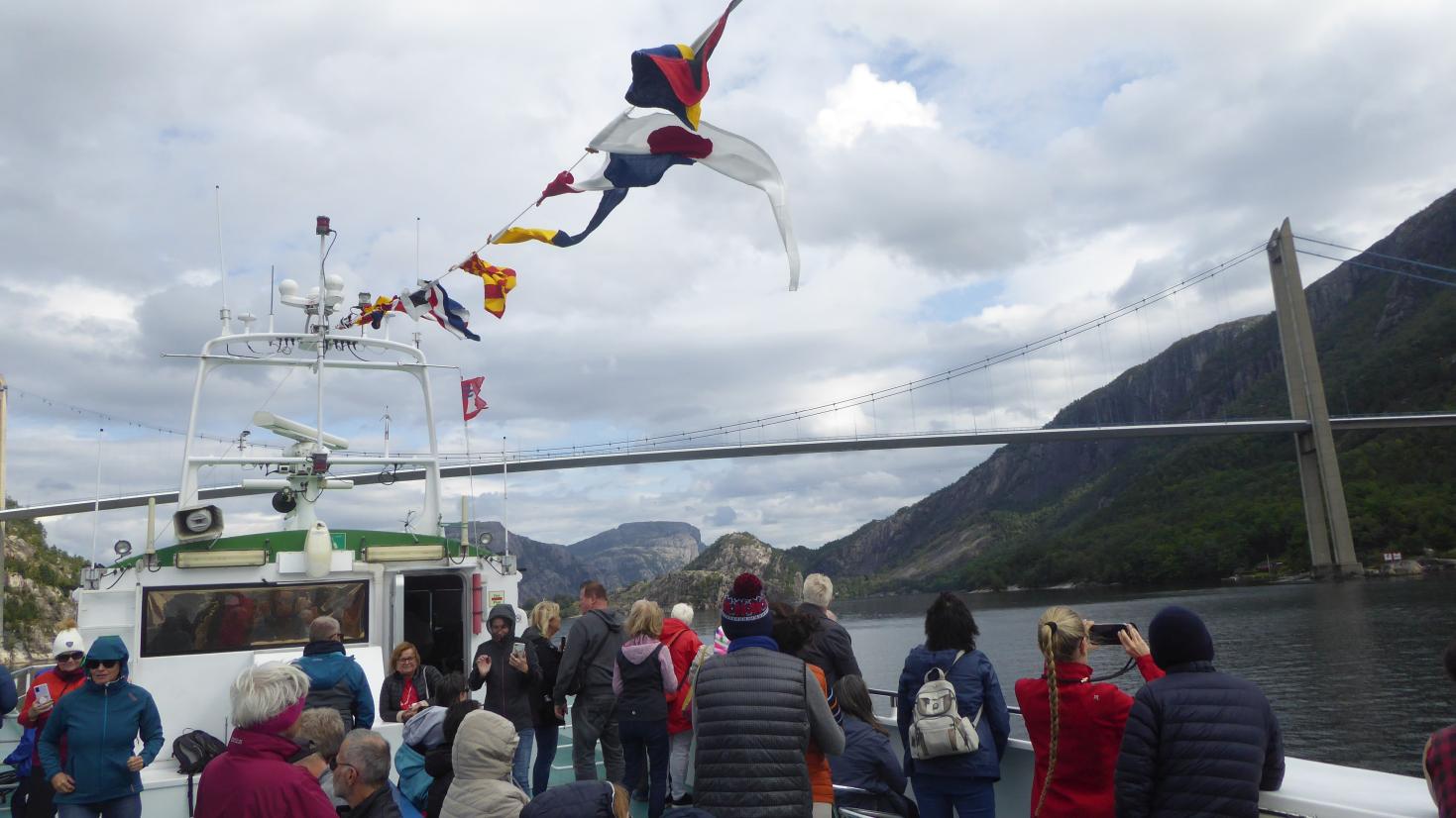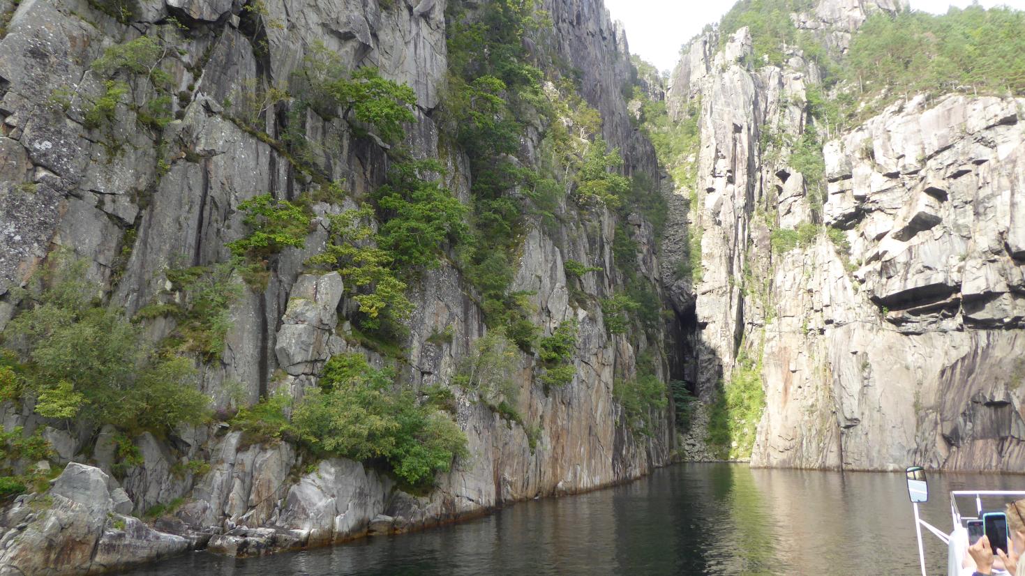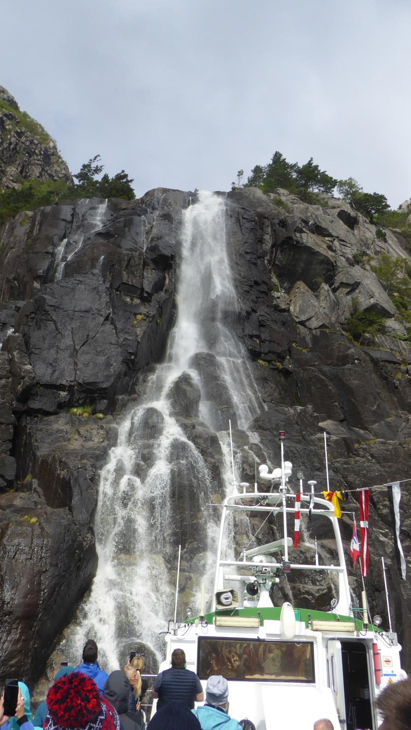 atemberaubender Felsvorsprung mit Blick auf den Lysefjord. Wir haben einen Ausflug mit einem Speedboot in den Fjord gebucht. Diesmal klappt alles und unser Speedboot schießt los Der Lysefford ist bis 500 m tief. Er heißt heller Fjord, weil seine blankgescheuerten Felswände in der Sonne hell leuchten. Touristenmagnet ist die Preikestolen (Felskanzel) eine glatte 600 m hohe Plattform. Sie hat es sogar bis nach Hlloywood geschaft im Film „Mission: Impossible - Fallout“ Hier war früher eine Muschfarm. Die Höhle Farteheda. Der Legende nach wurde sie von Landstreichern genutzt, die ihre Steuern nicht bezahlt hatten. Als die Polizei kam, bewerfen sie sie mit Steinen und die Polizei musste aufgeben. Die Steuern wurden erlassen. Bergziegen gelingt es bis hierher herunter zu kommen, um sich ven den Touris füttern und fortografieren zu lassen. Der Wasserfall Hengjanefossen. Der Sage nach versiegt der Fall nur wenn 7 Brüder der Region gleichzeitig heiraten. Für die Eroberung von Stavanger wählen wir einen Hop On - Hop off. ![]() Stavanger hat 146 000 Einwohner. Wichtigster Erwerbszwei ist die Ölindustrie, die man anstelle von Bergen hierher geholt hat. Das größte Ölunternehmen ist Stadoil, ein Staatsunternehmen, dessen Gewinne in den Staatshaushalt fließen (geht denn das?) Zunächst wurde die See zwischen GB und Norwegen von den Vereinten Nationen GB zugeschrieben. Die fanden das Gebiet uninteressant und schenkten es Norwegen. Norwegen war bitter arm, bis man später Öl fand. Ätsch! Das war der Aufstieg Norwegens, der seinen Bürger, und zwar allen, Wohlstand brachte, ätsch. Norwegen versorgt sich zum größten Teil mit Wasserkraft und Windkraft, Öl wird exportiert, ätsch. Ätsch. Hübsche Stadt, hübsche Häuser, schlechtes Wetter. ![]() Walskelett vor dem Museum. Im Zentrum gelegen, der Park Byparken mit dem See Breiavatnet. ![]() ![]() |