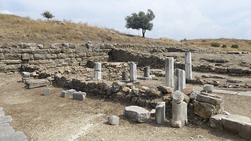 Dem Gott der Medizin "Asklepios" wurde im 4.Jahrhundert v.Chr. ein Heiligtum auf dem Südhang des Hügels "Akropolis" gebaut. Eine Aufschrift aus diesem Jahrhundert (auf einem der Theatersitze eingarviert) zeigt, dass der Bau des Heiligtums durch die Gaben der Gläubigen ermöglicht wurde. |