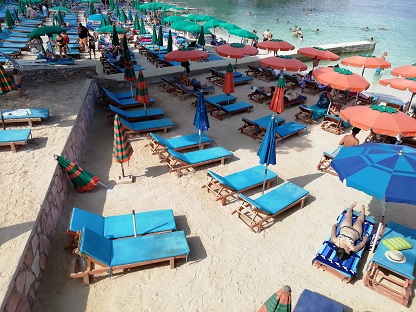 Am Nachmittag erreiche ich Ksamil. Am Ortseingang werben ältere Männer mit Zimmerangeboten, mir ist ein Hotel lieber. 30 Euro mit Frühstück ist ok. Das Hotel ist nur eine Minute vom Meer entfernt und ich unternehme noch einen Spaziergang. |