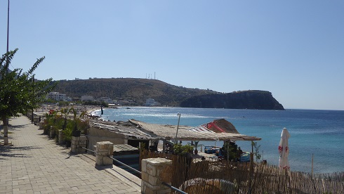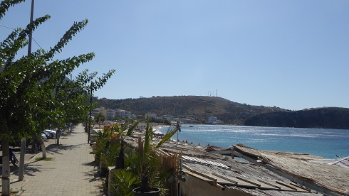 Sehr schön gelegen und mit einem einladenden Strand ist Himare. Die Felsformation oben im Bild sieht schönen aus und stinkt erbärmlich. |