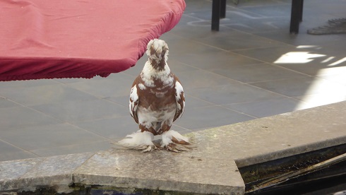 | Am Frühstückstisch bettelt diese etwas überfederte Taube. | |||