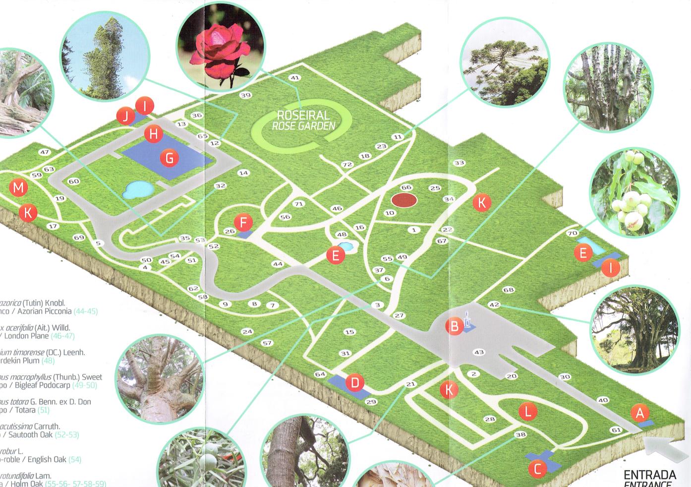Gleich neben dem Sant'ana Palacio liegt der Botanische Garten "Jose do Canto". Jose do Canto (1820 - 1898) war Naturliebhaber und sehr vertraut mit den Geheimnissen der Botanic. Er unterhielt Kontakte zu vielen botanischen Gärten in der ganzen Welt. A - Eingang B -Denkmal für Jose do Canto C- Kapelle Sant'ana E -Teich G - Palast H -Hotel Gartenhaus Roter Kreis -Riesenbambus |