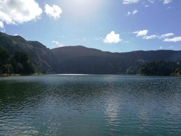 Schon die Wanderung zum Ausblick auf den Blauen See ist sehr schön. Das Alter der Vulkanlandschaft beträgt ungefähr 210.000 Jahre. Der Krater war früher ein 1.200 m hoher Vulkan. Im 15. Jahrhundert gab es einen massiven Vulkanausbruch, der Vulkankegel wurde zerstört und der heutige Krater blieb zurück. Die Asche dichtete den Grund des Seebeckens ab und so entstand im Laufe der Jahre der heutige See. |