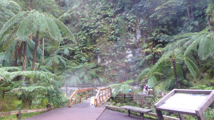 Es Wanderweg rund um den See, ich parke und mache mich auf den Weg. In nördlicher Richtung vom See gibt es ein geothermisches vom dem eine starke Dampfentwicklung und ein noch stärkeres Zischen und blubbern. ausgeht. Der Weg ist leider nicht sehr lang, führt aber durch eine schöne Vegetation. Der Weg endet an dieser meteorologischen Station. |