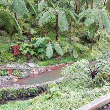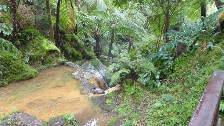 Nächste Station ist die "Caldeira Velha". Hier kann man das Thermalwasser nicht nur sehen für 7 Euro auch darin baden. Eine Ausstellung informiert über die Caldeiras und die Fauna und Flora in der Nähe des Lagoa do Fogo. |
