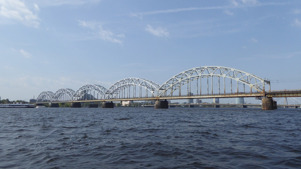 Ein Stück fährt unser Boot auch auf der Daugava, die von mehreren imposanten Brücken überspannt wird. |