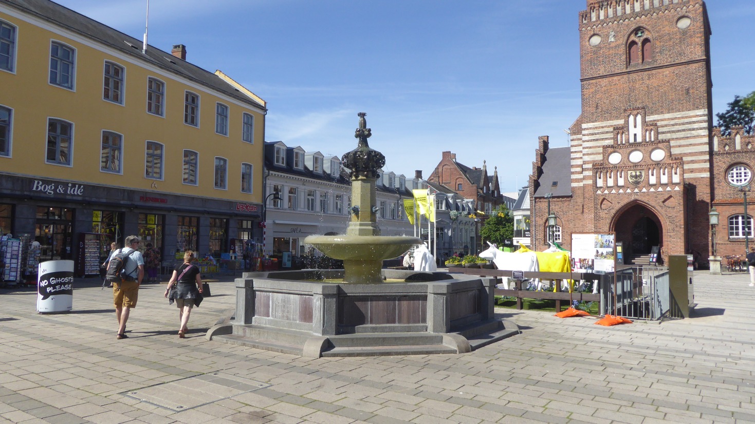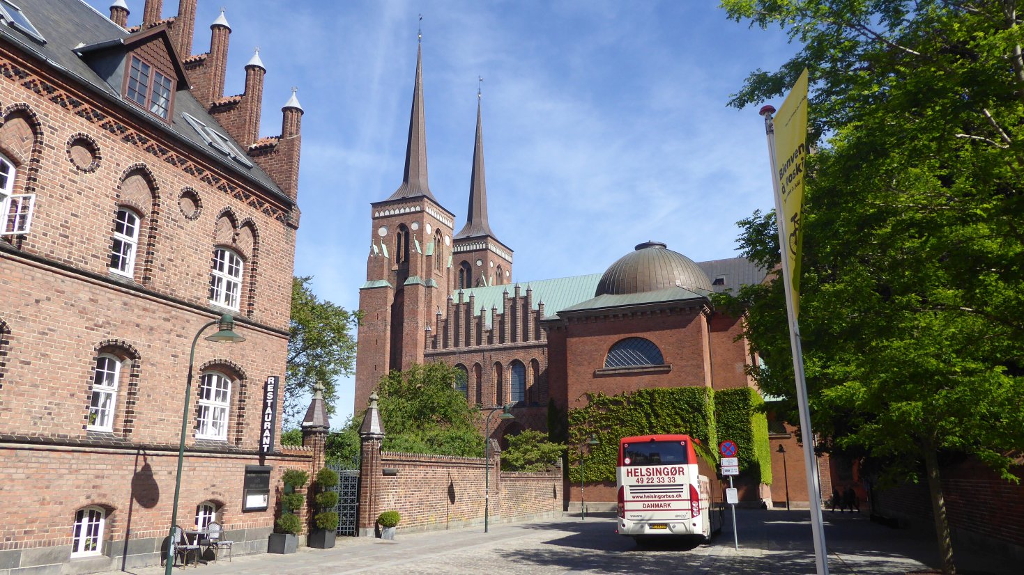 Weithin sichtbar erheben sich die Doppeltürme des Doms über der Stadtsilhouette von Roskilde. Er ist der berühmteste Sakralbau des Landes und symbolisiert die einstige historische Bedeutung Roskildes als geistiges und weltliches Zentrum des dänischen Königreiches. Im Juli findet ein Rockfestival statt. Der Bau des Doms wurde 1170 begonnen. Er ist heute UNESCO-Weltkulturerbe. ![]() |