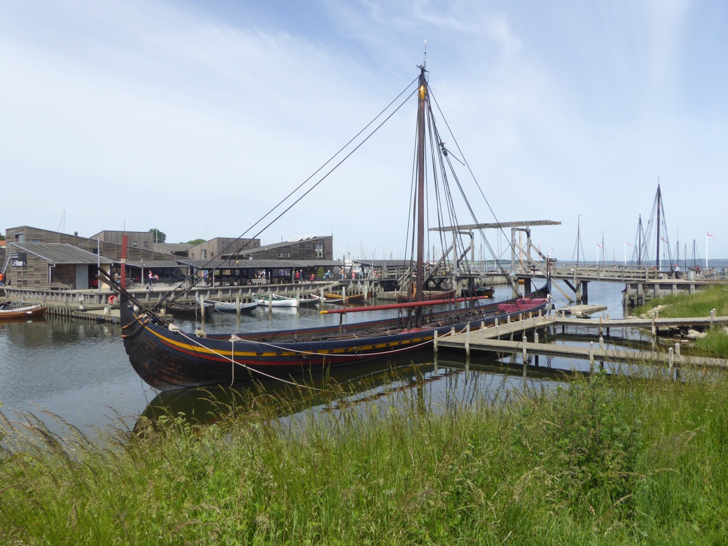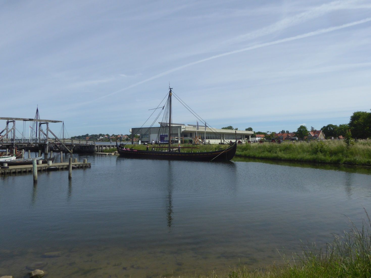 | Im Norden der Stadt liegt das Wikingermuseum Vikingeskibhallen. HIer sind insgesamt 5 Wikingerschiffe zu sehen. Sie wurden 1962 aus einer Engstelle des Roskildefjords geborgen, wo man sie versenkt hatte, um Feinden das Durchkommen zu erschweren. Der größte der Segler ist 28 m lang und konnte 30 Mann Besatzung aufnehmen. In der Museumswerft kann man beim Bau der Schiffe zusehen. Mit den originalgetreuen Schiffen kann man als interessierter Besucher auch in See stechen und interessante Touren durch den Fjord machen. |