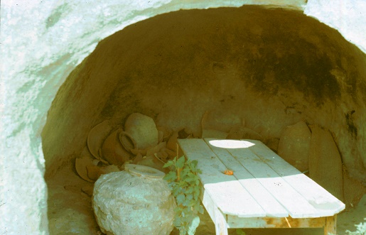 Die Wohnhäuser waren Räumlichkeiten, die einfach aus dem weichen Fels gehauen wurden und durch torbogenförmige Einlässe betreten werden konnten. Im Inneren wurden die Räume durch Säulen und Gewölbe getragen. | ||