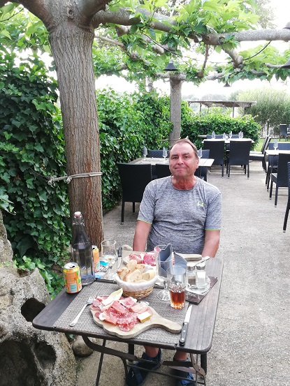 ![]() Rückfahrt - Hunger. Auf Korsika gibt es vor 19°° Uhr praktisch kein "normales" Essen, nur Imbiss. Den nehmen wir, einen Teller mit Wurst und Schinken, alles korsisch und superlecker. |