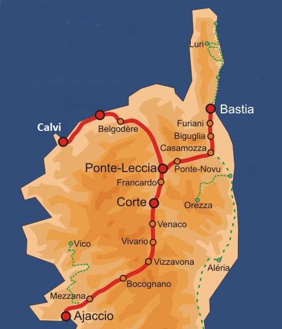 geht es nach Calvi, ganz ökologisch per Eisenbahn.