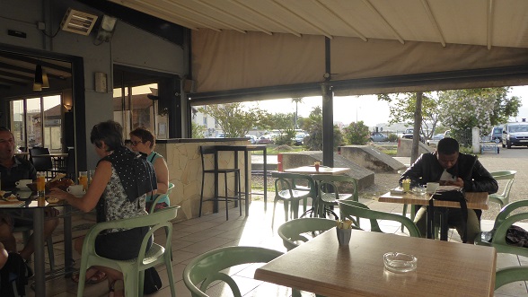 Am Bahnhof ist ein Imbiss, hier gibts auch Frühstück. Gut besucht, der Zug wird auch voll, aber wir bekommen Sitzplätze. |