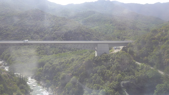 das Fotografieren ist nicht besonders erfolgreich. Bei Ponte-Leccia teilt sich die Strecke, wir müssen umsteigen. Noch mal eine interessante Strecke, aber auch hier sind Scheiben nicht besonders durchlässig. |