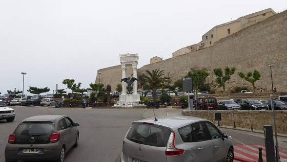 | Vor dem Bahnhof von Calvi diese utopistische Skulptur |