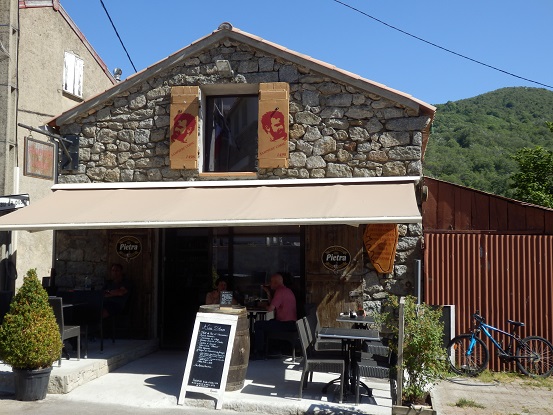km von Ajaccio, dafür reicht ein Nachmittag. Das Navi leitet uns nicht durch die Schlucht, sondern wählt einen seichteren Weg, die Rückfahrt nehmen wir dann duch die Schlucht, vorbei an Tolla und Ocana. In Bastelica nehmen wir gleuich unser Abendbrot, obwohl es erst Nachmittag ist. Schinken-Käseplatte für zwei Personen, 30 Euro. |