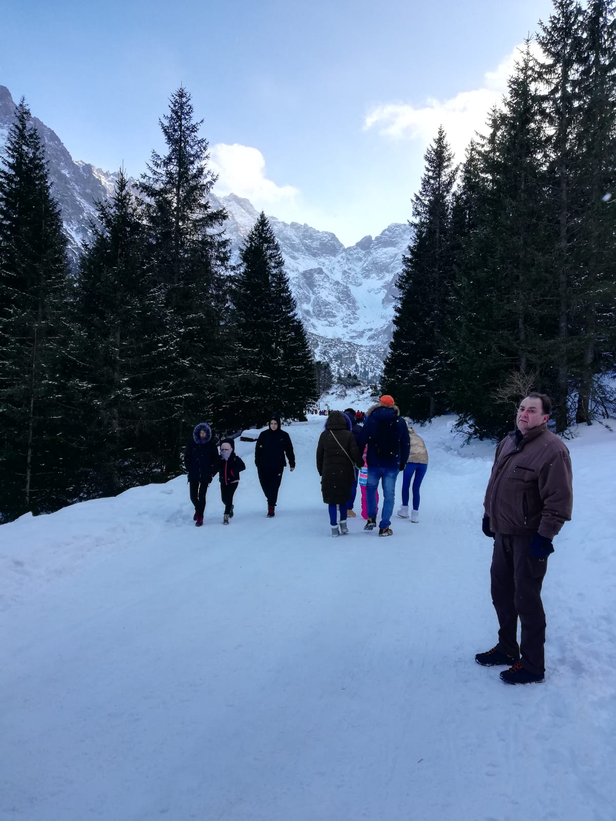 5 km Wanderung. Es ist kalt, wir geben das Geld aus. Zurück das gleiche noch mal. ![]() Einen Kilometer muss man dann doch noch bis zum Auge laufen. Das Auge ist der flächenmäßig größte und der vierttiefste Bergsee der Hohen Tatra am Fuße des Massivs der Mięguszowieckie Szczyty im Tal Dolina Rybiego Potoku. 2014 bezeichnet The Wall Street Journal das Meerauge zu einem der fünf schönsten Seen weltweit. |