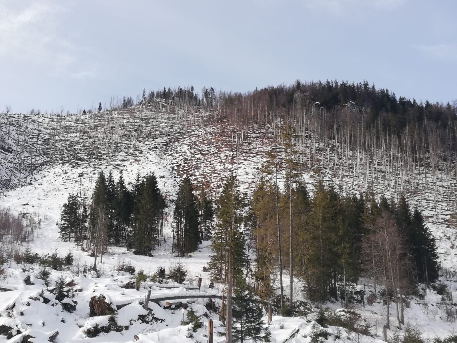 Vom Hotel aus unternehmen wir eine kleine Wanderung. Es geht an einem Bachlauf entlang auf eine Ebene. ![]() Der Waldbestand auf der Ebene gibt Anlass zum Erschrecken. Kahlschlag. Tafeln kommentieren diese Wüste. Es gibt Trockenheit und Borkenkäfer. Monokulturen sind die Hauptschuld, aber natürlich auch der Klimawandel. |