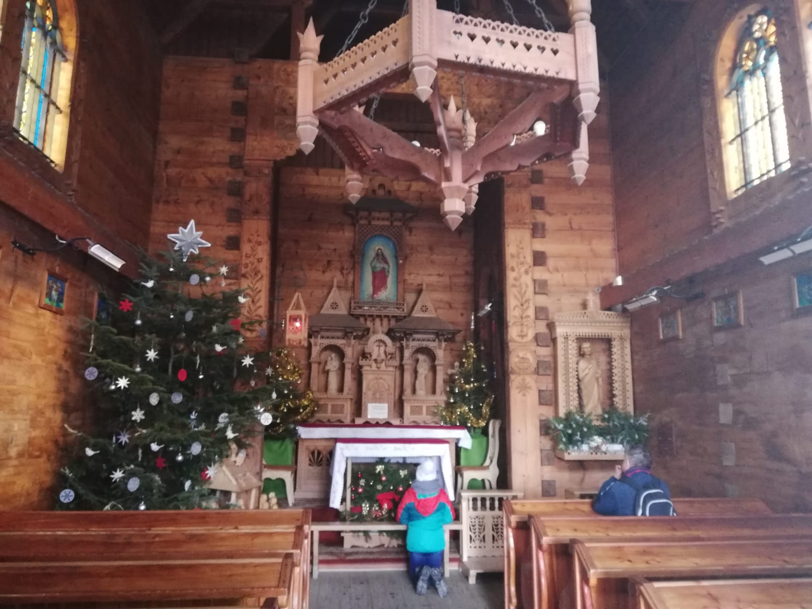 | In der Nähe ds Hotels ist auch eine kleine Kapelle aus Holz mit schönen Schnitzereien. | |||