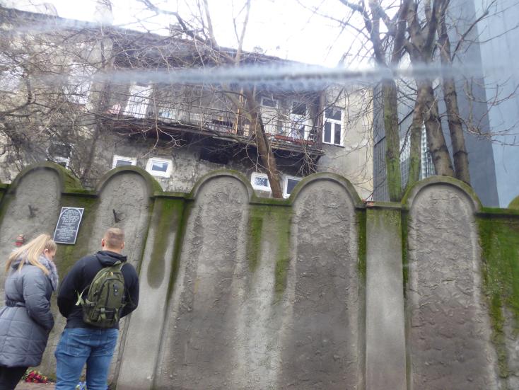 Die Mauer um das Ghetto wurde im Stil jüdischer Grabsteine gehalten, um den Juden ihre Zukunft vor Augen zu führen. |
