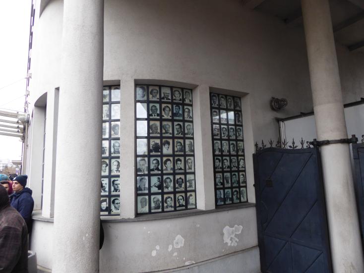 Außerhalb des Ghettos befand sich die Fabrik von Oscar Schindler. Schindler rettete 1200 Menschen vor der Vernichtung, indem er sie in seiner Fabrik beschäftigte. Vor dem jetzigen Museum sind die vorhandenen Fotos der Arbeiter von Schindler zu sehen zusammen mit ihren Namen. |