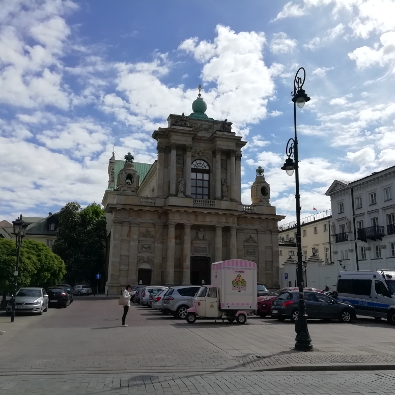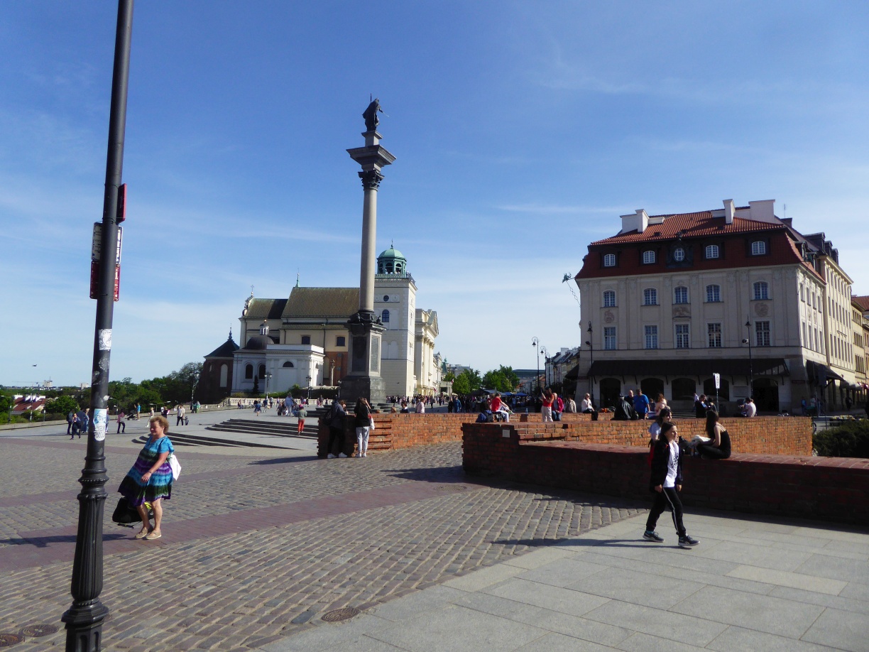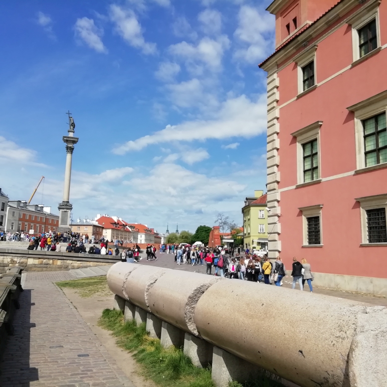 Sigismundsäule steht ein älterer Mann und spricht mich